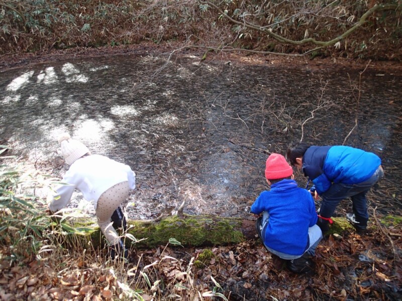 2026年1月18日(日)に、恒例の「2026年冬の六甲山子どもパークレンジャー」を目指そう!」を開催しました。天候は晴れで6℃、子ども9名、大人7名、スタッフ3名の19名が参加し、六甲山ビジターセンターで10:00開始、まちっ子の森に出かけて、氷結した二つ池で氷を触って感激しました。クロモジ茶も試飲して、午後にセンターに戻りました。温かい昼食を食べて、体験したことをまとめて発表し、14時30分に解散しました。少人数だったので、お互いに親しみ、森を散策して冬の六甲山の自然を満喫しました。